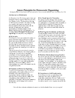 So when you're thinking about undoing racism, or being an antiracist or antiracism work, you know, you're acknowledging that you're confronting a built system, something that's built under a false construct, race, you know, and when you're going to combat that, there's, you know, there's a lot of issues to it or whatever, but the Jemez principles will help you see, how do you approach people and talk about it? You know, for example, listen, let people speak is one of the principles, you know, listen to the people on the ground. Don't barge in there don't don't come in with your your petition and your fancy stuff and, or be online and be a dick. You know, go try to introduce yourself and get to know people. You know, ask questions. That's okay. You know, people were very generous for the most part, whether they're Black or Brown or or Native or Asian, or you name it, you know? If you're able to ask questions and listen about an issue, people will likely talk, you know. Trying to work in solidarity and mutuality is another big one for me, you know, it's not just about like, "I'm here to help you," versus, "I'm here because our struggles are connected and intertwined. And for me and my family to be successful and get what we need, it depends on your family, and your people being successful and getting what you need. How can we work together to make sure that we everything we do reinforces that and that we lift each other up?" A lot of things that we see is very transactional in the advocacy and activism world, you know, sign this, and then we'll go do that for you, or will tell the person to do the thing and change? It's not so much how can what can we do to help you directly, like we talked about bills and taxes and things like that. But also, we have to know that, what is it we're gonna get out of it, it's not just this potential policy outcome. There's tremendous value in human relationships. And in culture and community building, you're going to learn about the people in your community, you're going to learn about the history, you're going to learn, you know, and make new friends and maybe some recipes, maybe, you know, some new music or something. It's limitless. You know, humans have tremendous potential in beauty. But we we rob ourselves of that by, you know, retreating into our silos in our, in our four walls. You know, Jemez can give something--these are short, short, little principles that can give people something to read and reflect on, they can be kind of abstract and theory based, but when you're advocating for change, and then you look at these and you ask yourself, "sm I doing this?" There's tremendous potential for learning, and changing how we do our work.
