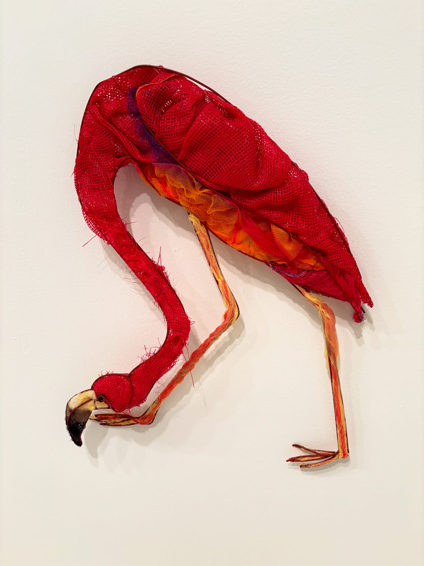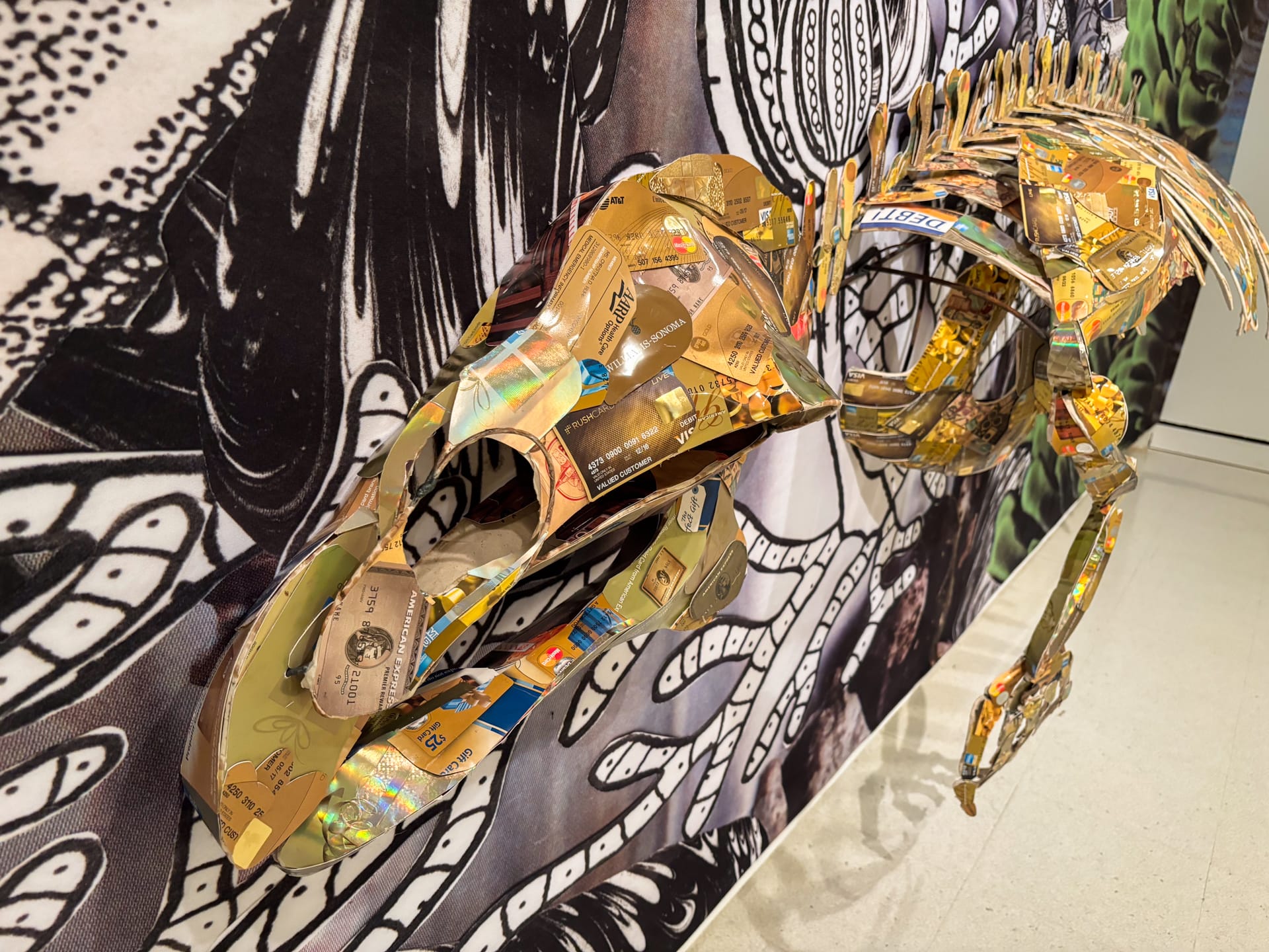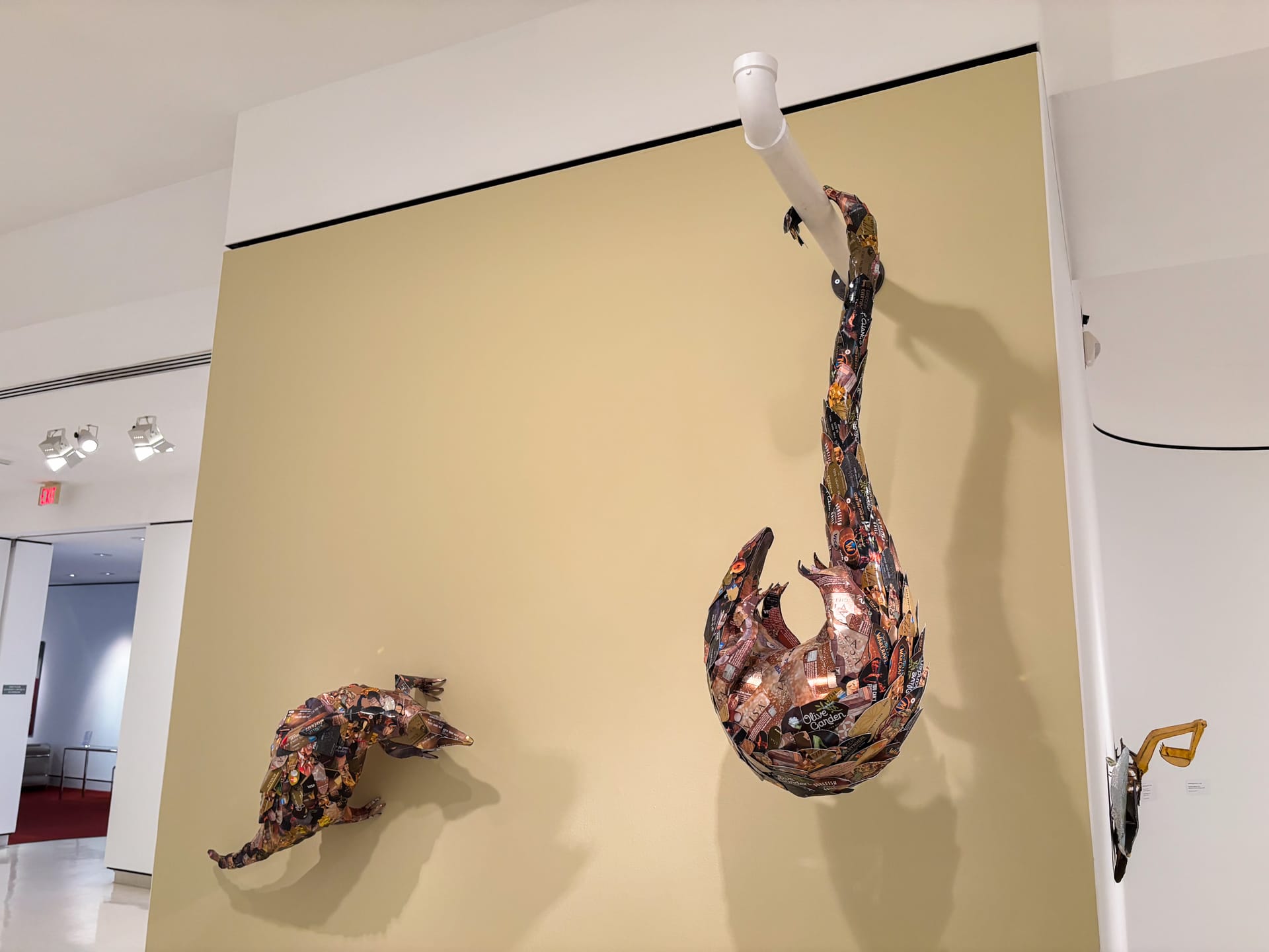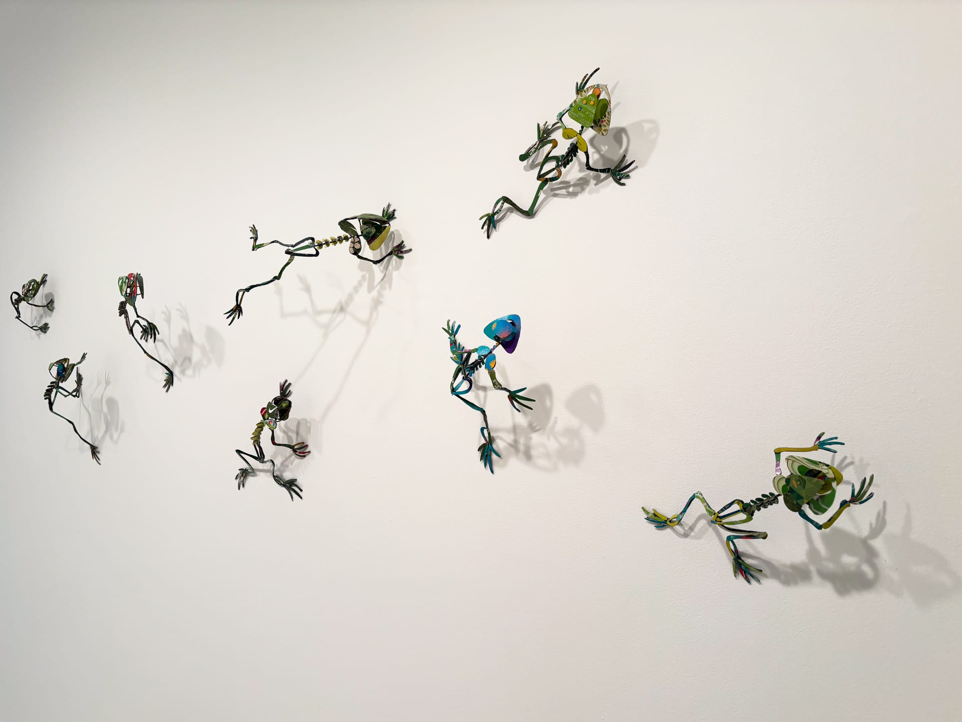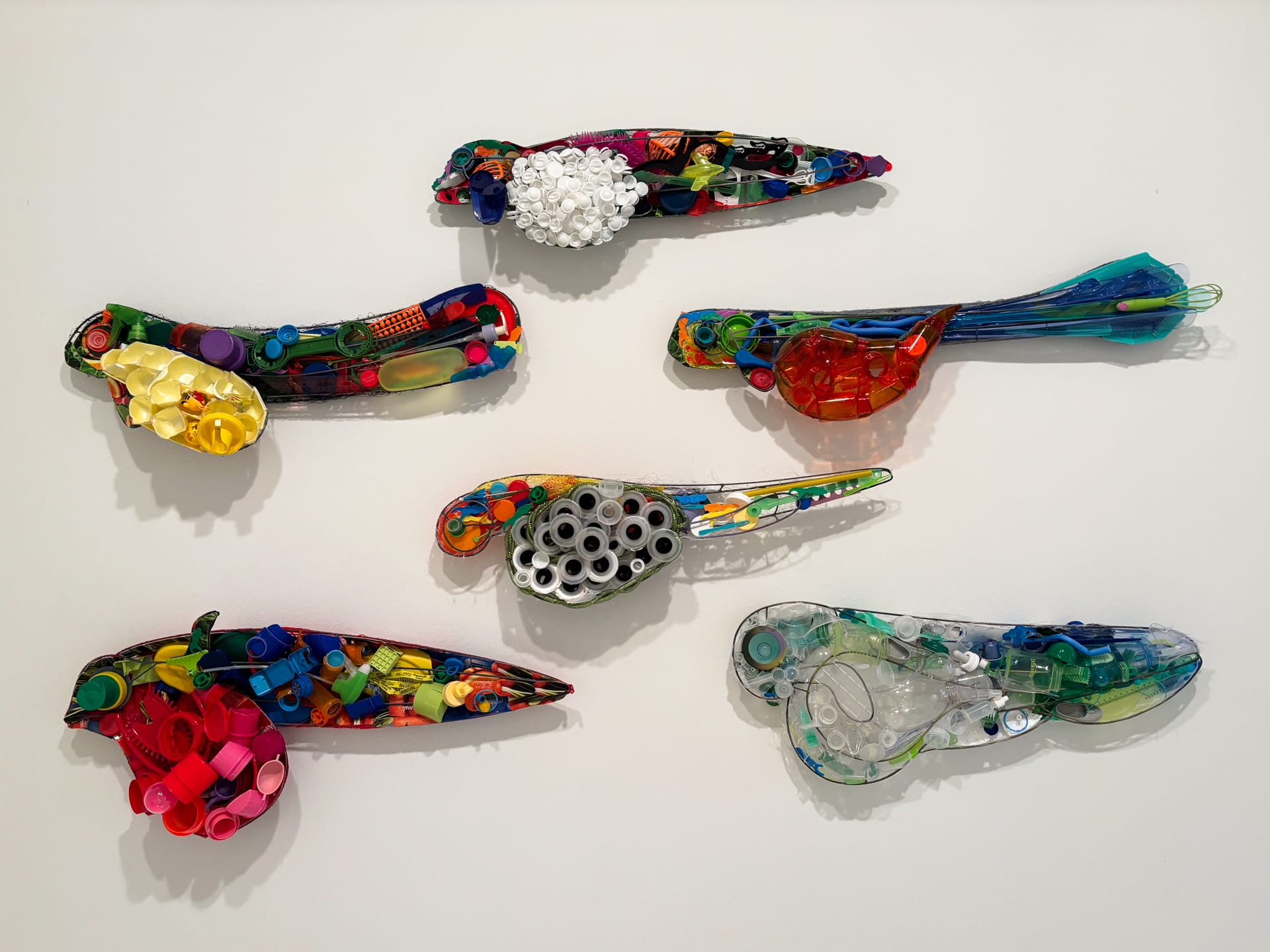 Her work exposes ecological threats often hidden from sight—from acid rain, to fast food, to microplastics; and often waste materials are her medium—from cardboard, to chicken bones, to credit cards—drawing attention to the presence of that waste and its ecological impacts.