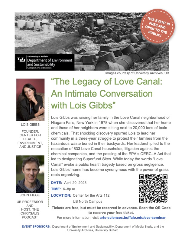 I am very excited to announce that tomorrow, April 20, 2023, from 6-8 PM ET, I will be recording a live on-stage interview with Lois Gibbs, the legendary activist who organized her neighborhood of Love Canal in Niagara Falls, NY, after she learned about the toxic waste buried under her son’s school. The organizing work she did, together with her neighbors, changed the environmental movement forever and led to the passage of Superfund legislation.
