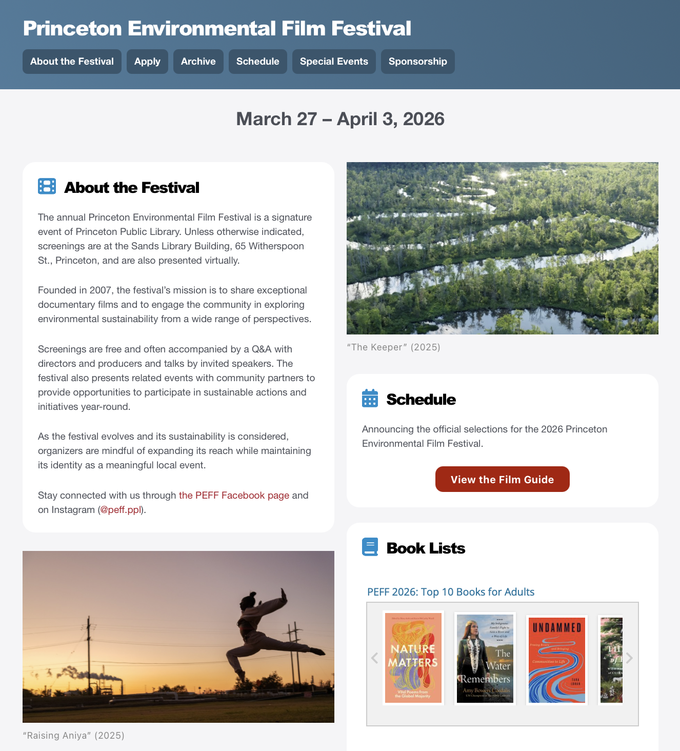 The second is the Princeton Environmental Film Festival in Princeton, New Jersey.
